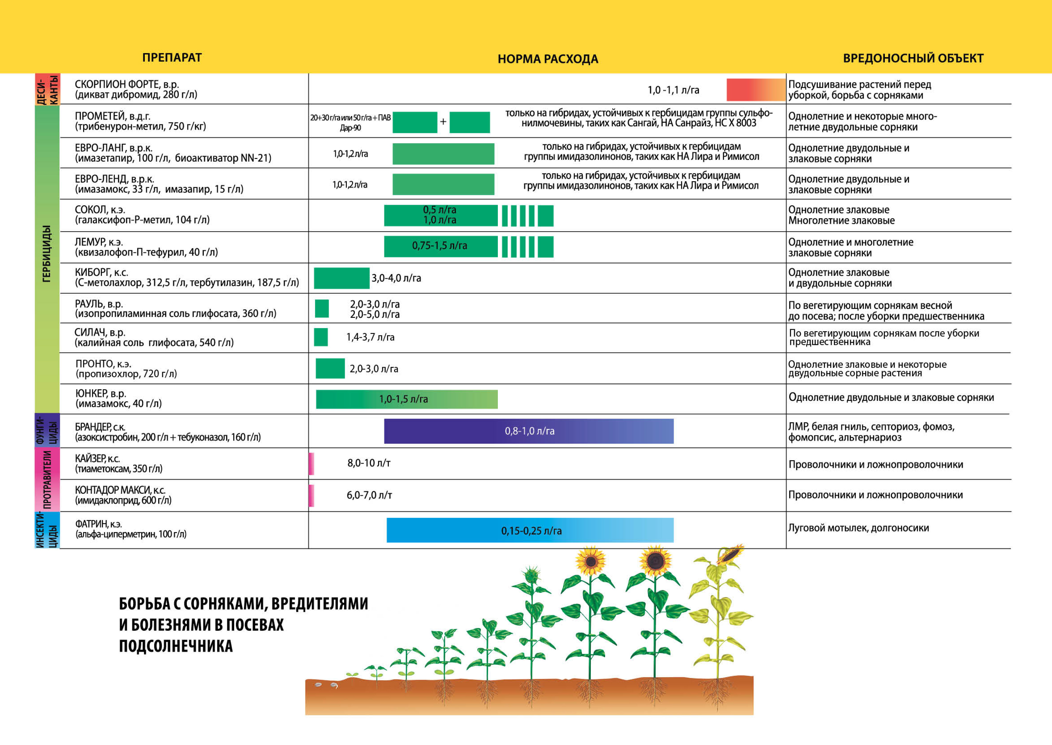 Борьба с сорняками, вредителями и болезнями в посевах подсолнечника